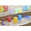 The translucent colored measuring cup of different colors will give your child endless fun because it's the perfect size for little hands. Ideal for all sorts of games, exploring sand and water, pouring different materials, learning to measure volume and count quantities. This measuring cup is from a series of translucent toys that will allow the child to observe, infuse and learn fine motor skills, counting. Other products are funnel, tweezers, bucket. Can also be purchased geometric shapes that can be put into buckets by color and invent more with them great games for the whole day.
