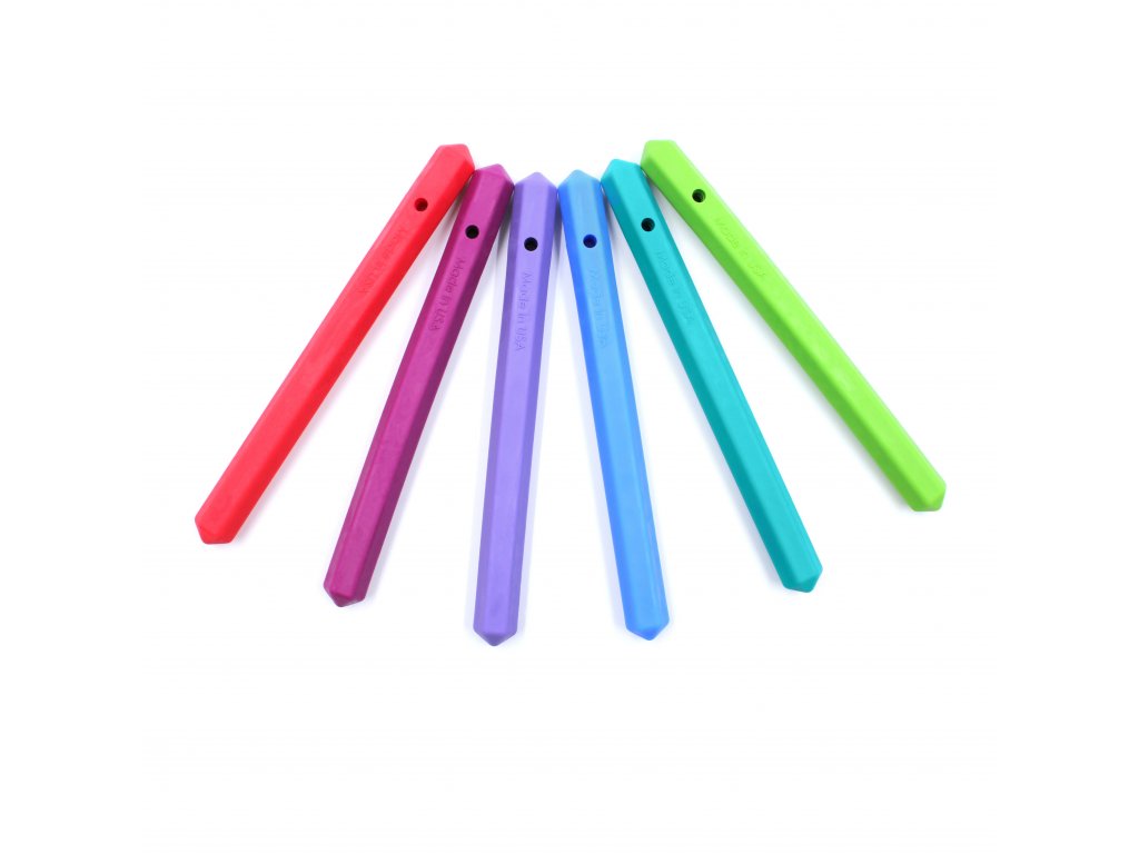 - Extra tvrdá - Jedná se o nejpevnější a nepružný materiál. Doporučuje se u velmi intenzivní potřeby kousat do velmi tvrdých předmětů, porcelánový hrnek, kovová lžíce, kamínek.
