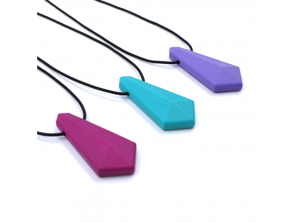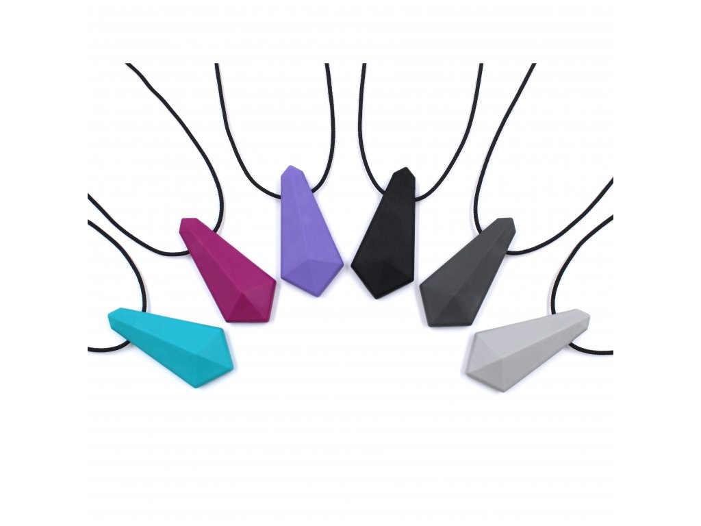 Chewel™ - žvýkací přívěsek ve tvaru krystalu poskytuje bezpečné, pohodlné, diskrétní a cool řešení pro ty, kteří potřebují žvýkat a kousat. Velmi dobře simuluje paleček, takže se dá použít i jako bezpečná alternativa při cucání palečku, tvar totiž nedovolí vytvoření podtlaku na patro, takže se nedoformuje ani patro ani skus. Pro kluky supermanovský kryptonit, pro holky stylový přívěsek ve tvaru krystalu. V každém případě to bude hit! je to bezpečná alternativa ke kousání a žvýkání tužek, triček, prstů a cucání palečku. Je to zklidňující pomůcka, která napomáhá lepšímu soustředění.