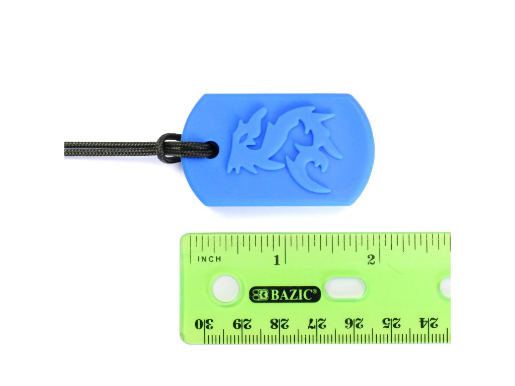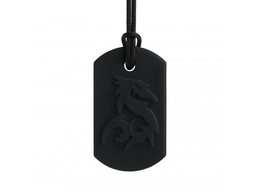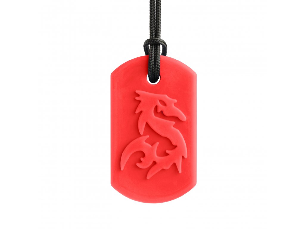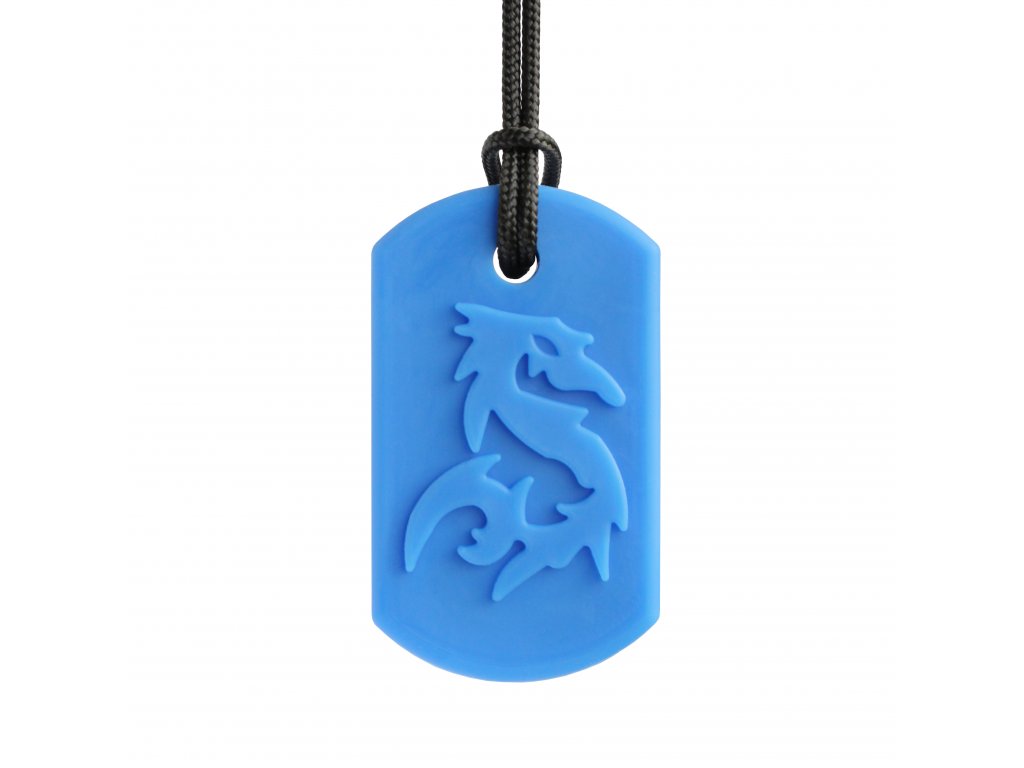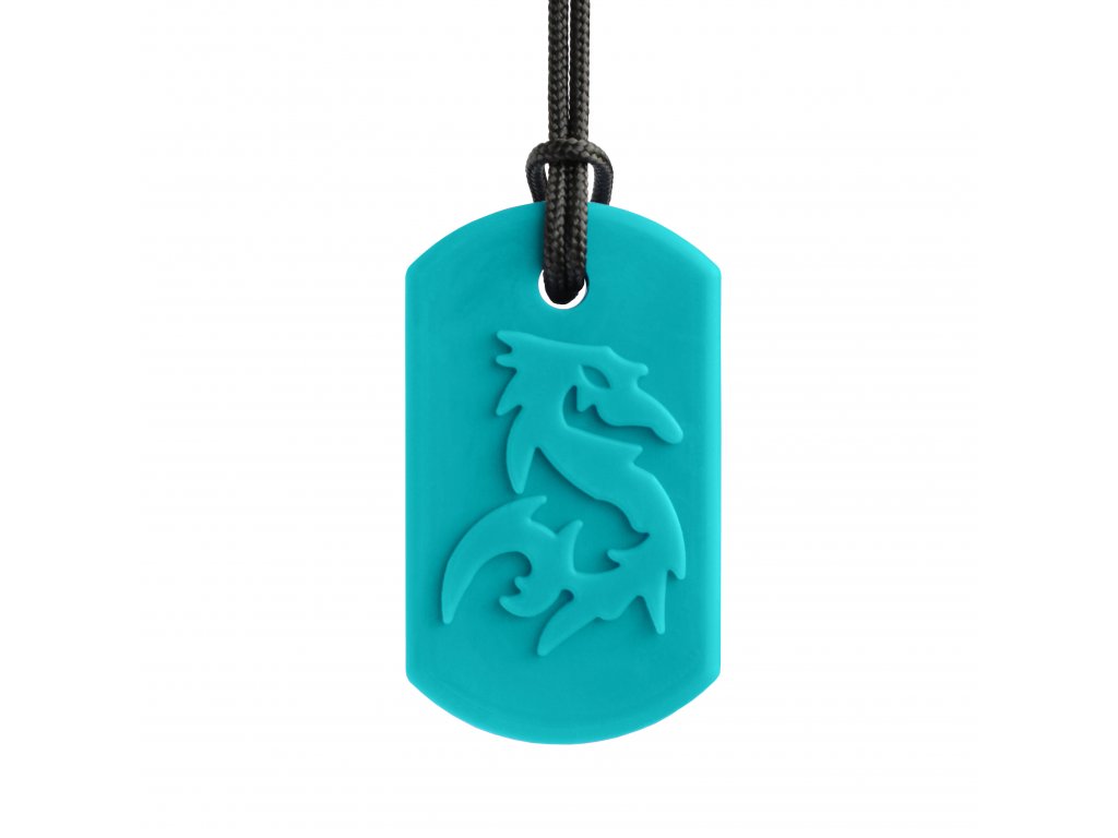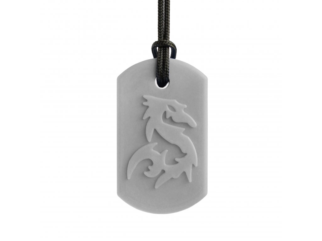 Žvýkací přívěsek je bezpečné, stylové a diskrétní řešení pro každého, kdo má potřebu žvýkat a kousat (jak děti, tak dospělí). Přívěsek je 25 mm široký a asi 50 mm dlouhý, téměř 10 mm tlustý. S těmito parametry jde o jeden z „nejmasitějších“ náhrdelníků. Dragon Je vhodnou volbou pro osoby, které upřednostňují žvýkání předními zuby. Využijte jej jako bezpečnou alternativu ke žvýkání tužek, triček, prstů atd., Je to zklidňující pomůcka, která napomáhá lepšímu soustředění.