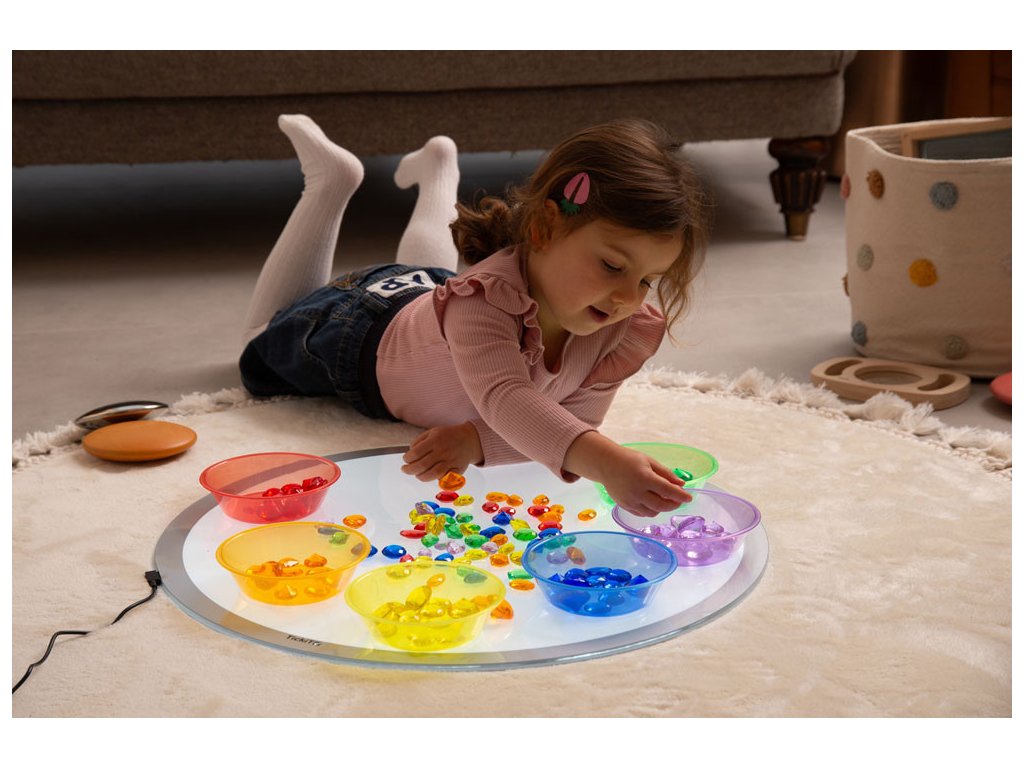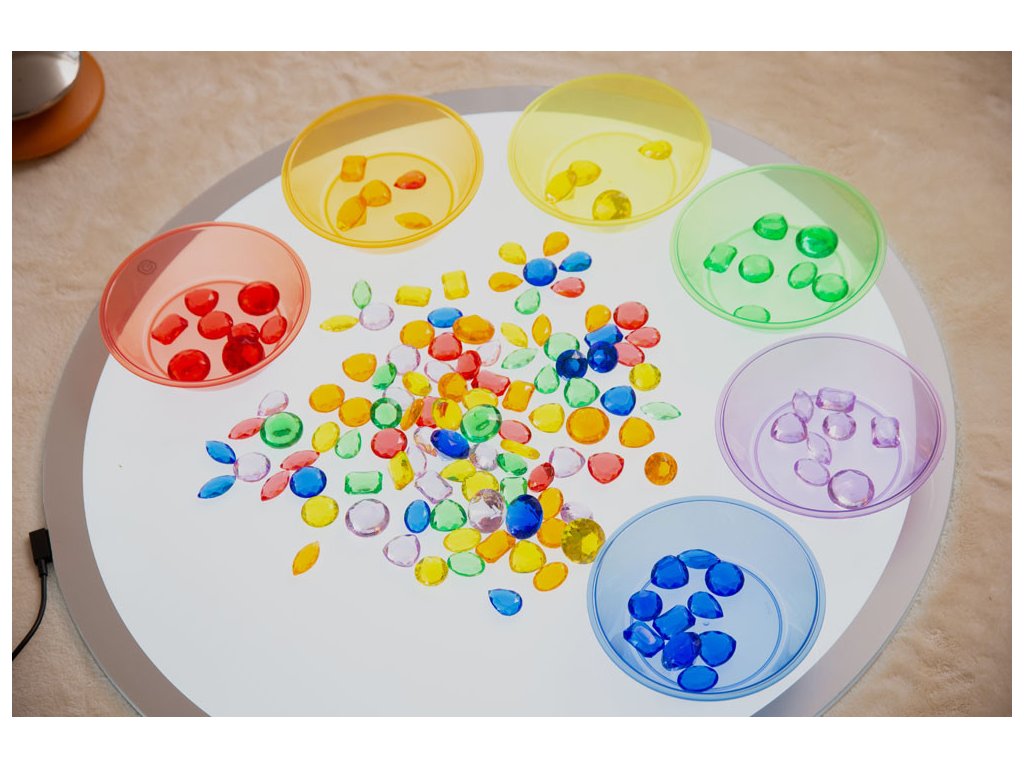 Color bowls with an ideal size for young children to use for example in sorting activities or when exploring the colors of individual bowls.