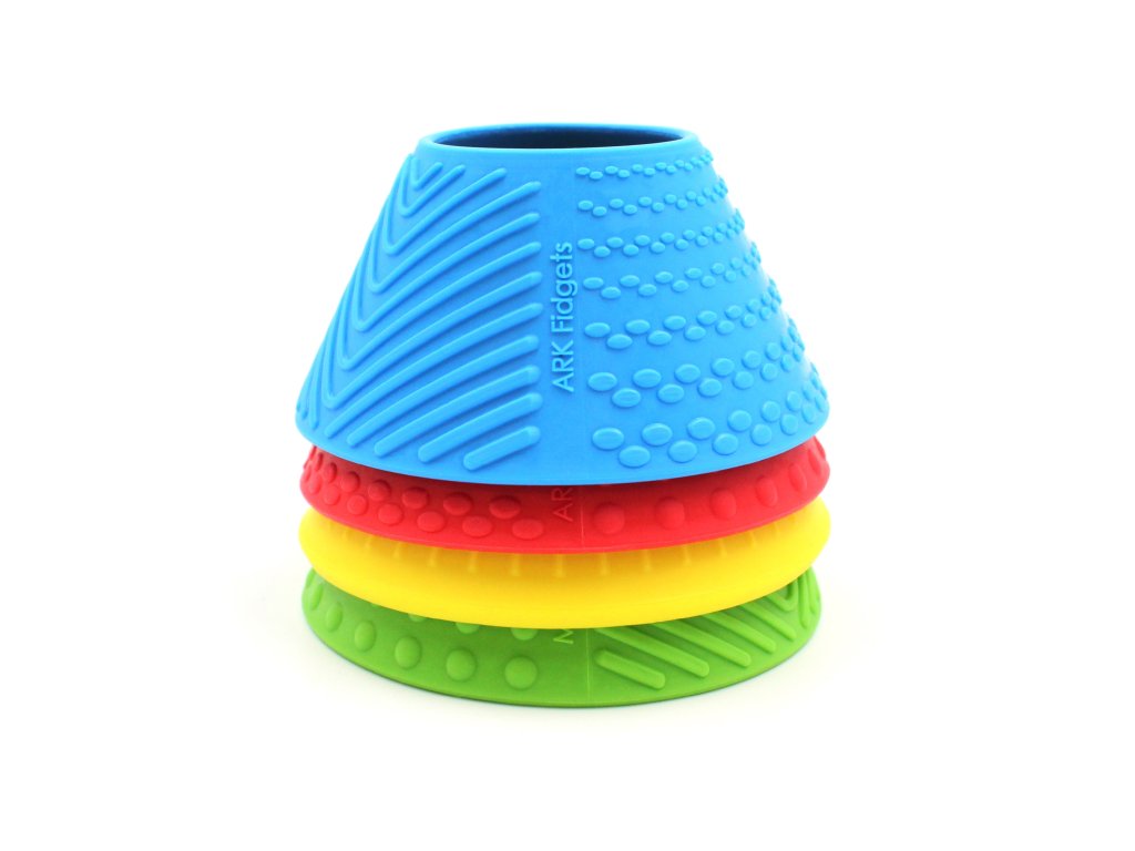 ARK Flidget™ je skvělý hmatový nástroj na doma, do školy, do práce nebo kamkoliv jinam. Otáčejte jej dovnitř a ven, abyste zaměstnali ruce a nechali tak svou mysl soustředěnou. Můžete také přejet prsty po kterékoli ze 4 různých texturovaných sekcí. Kolem vnější strany Flidgetu je část hrbolků, oválů a čar, z nichž každá se zvětšuje, jak jdete shora dolů, pro ještě více hmatových variací. Svislé čáry probíhají podél vnitřní části Flidgetu.