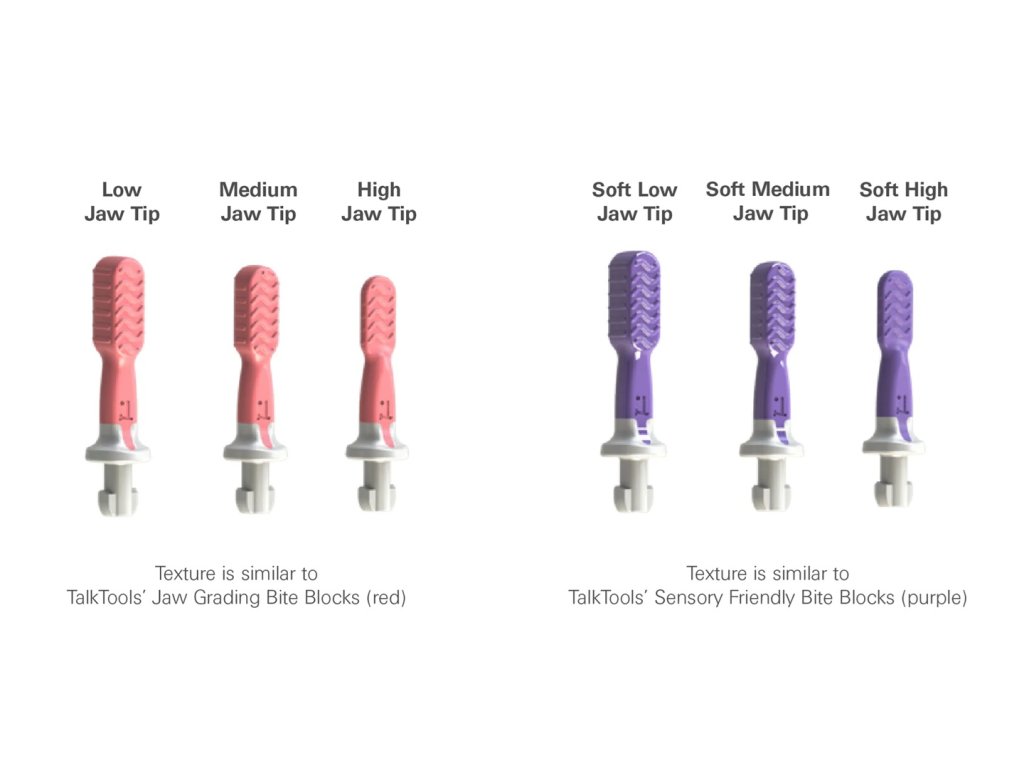 Textura je podobná pomůckám TalkTools Jaw Grading Bite Blocks™