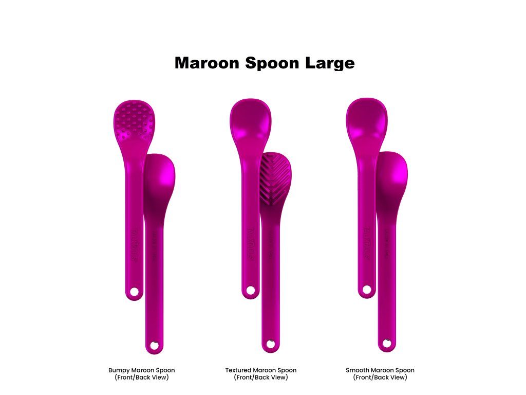 Magenta lžička je nově k dispozici ve dvou velikostech - malá a velká. Lžičky mají dostatečně hluboký tvar pro udržení jídla. Lžičky jsou dimenzované pro terapeutické účely: jsou tedy tak akorát velké a tak akorát malé, aby nenesly jídla moc ani málo, a aby se krásně vešly i do pusy malým dětem (malá lžička), ale taky starším dětem nebo dospělým (velká lžička). Materiál je vhodný i pro spastiky, kteří mají tendenci do lžiček při krmení kousat.