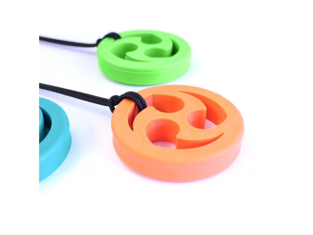 Ninja Star - žvýkací přívěsek, který poskytuje bezpečné, pohodlné, diskrétní a cool řešení pro ty, kteří potřebují žvýkat a kousat. Produkt je inspirován ninja vrhacími hvězdicemi, má moderní design a rozměry něco málo přes 50 mm v průměru a výšku téměř 10 mm. Je ideální pro ty, kteří rádi žvýkají předními zuby. Využijte Ninju jako bezpečnou alternativu ke žvýkání tužek, triček, prstů atd., Je to zklidňující pomůcka, která napomáhá lepšímu soustředění.