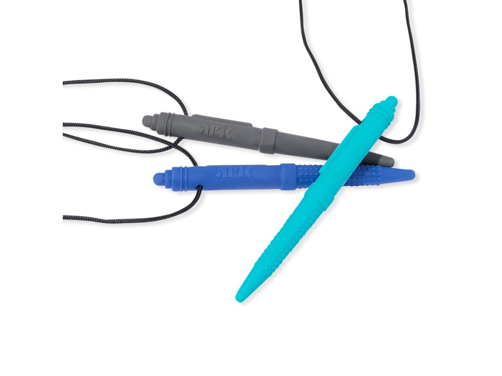 Dává to smysl, pokud potřebujete smyslové zklidnění kdykoliv během dne, ne vždy máte naše párátka po ruce. Pero je velmi diskrétní, vhodné hlavně pro dospívající a dospělé. Má stejnou velikost jako párátko, ale nabízí jiné senzorické vjemy. Verze s tečkami poskytuje nejintenzivnější smyslovou stimulaci v ústech. Vhodná je pro ty, co v kanceláři vloží do úst cokoliv, od kancelářské sponky (viděli jsme Vás :-) ), přes postit papírek až po srolované kousky lepící pásky. Určitě po ní můžete sáhnout ve chvíli, kdy odvykáte kouření, nebo bojujete s emočním přejídáním.