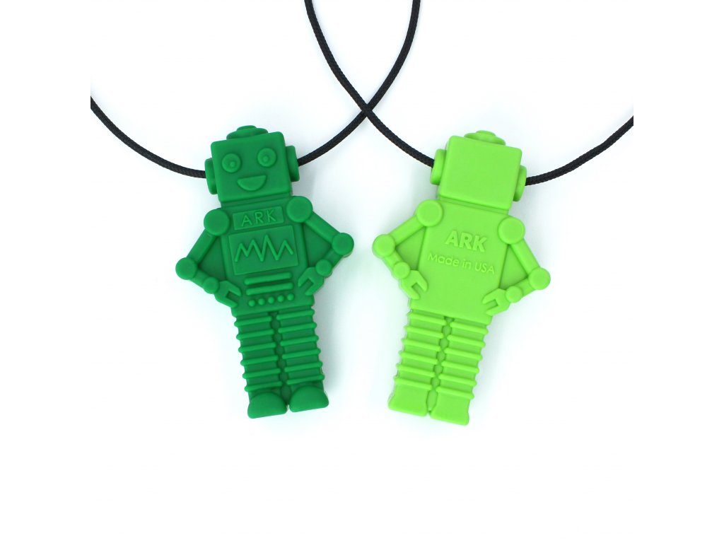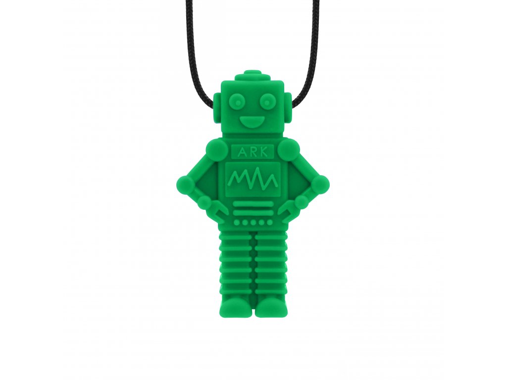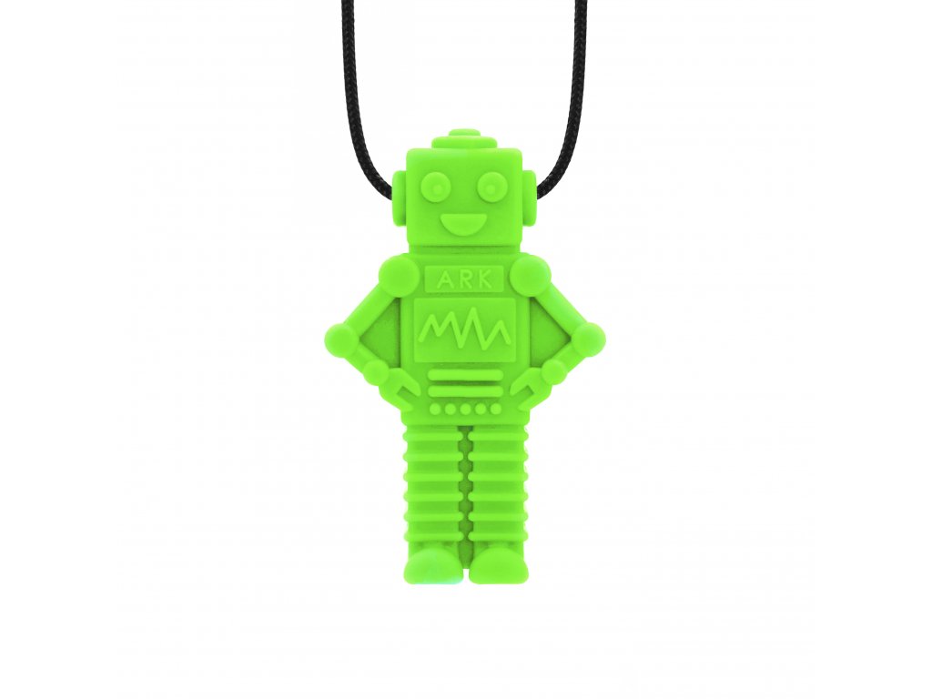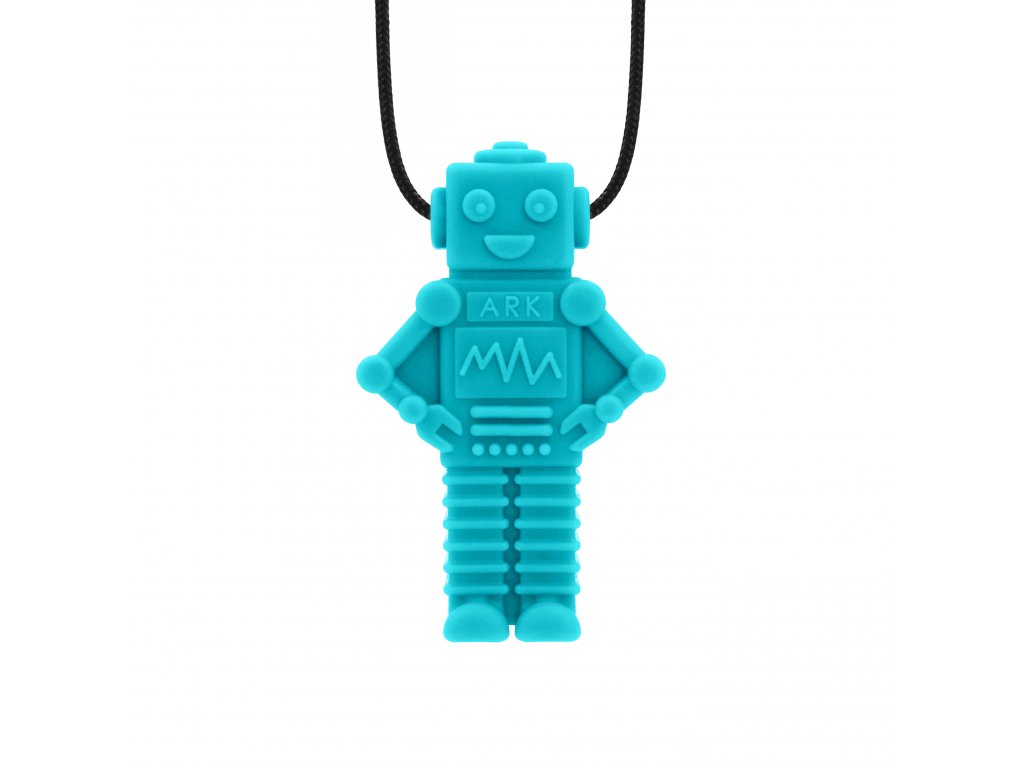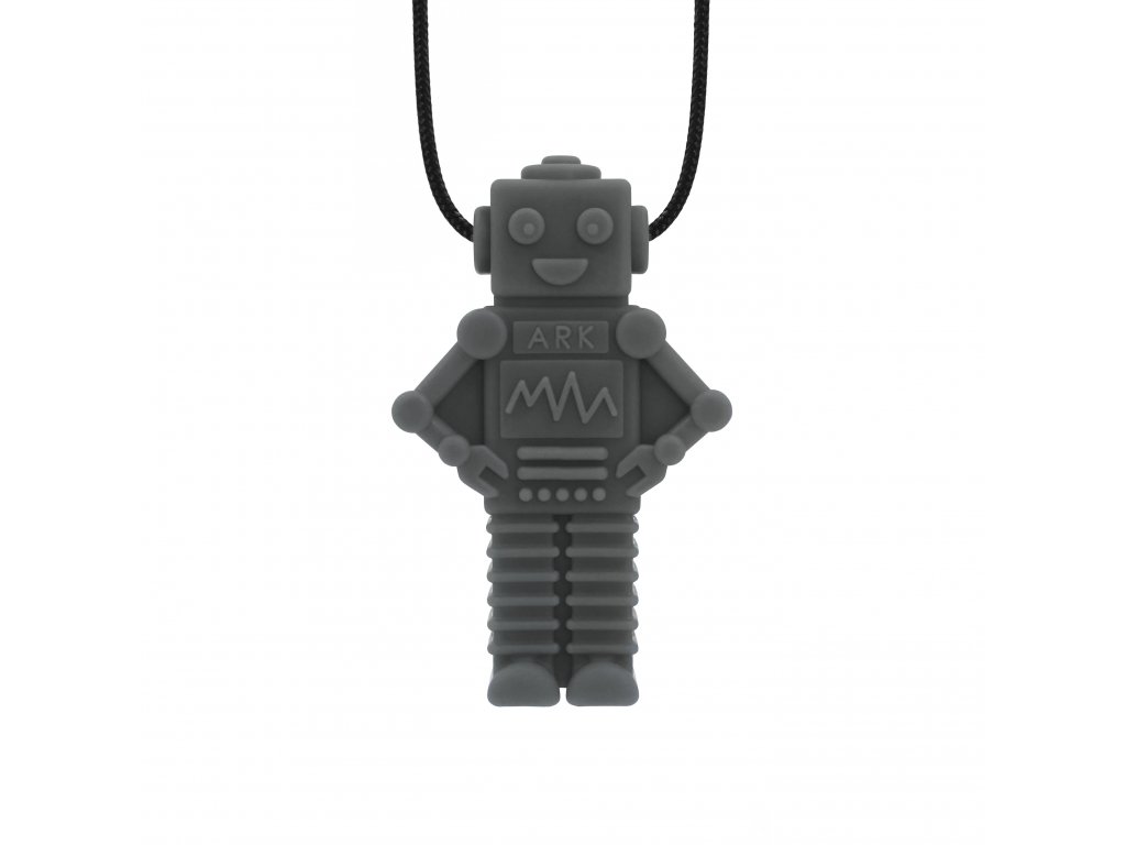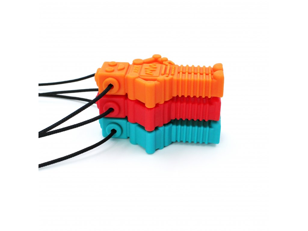 RoboChew™ – je žvýkací přívěsek ve tvaru figurky robota téměř 4 cm velký v nejširší části a dlouhý téměř 6 cm. Hlavní trup figurky je asi 1.25cm tlustý. Jedná se o super příležitost pro ty, kteří upřednostňují žvýkání premoláry a/nebo předními zuby. Využijte tohle řešení jako bezpečnou alternativu ke žvýkání tužek, triček, prstů atd., Je to zklidňující pomůcka, která napomáhá lepšímu soustředění.