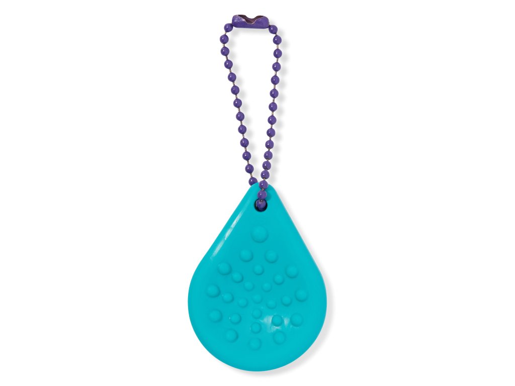 Sensastone je malý, tak akorát do ruky a připevněný na otevíracím řetízku. Je ideální na klíče, pouzdro, kabelku, kde bude vždy připraven pomoci při senzorickém neklidu.