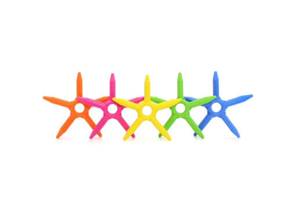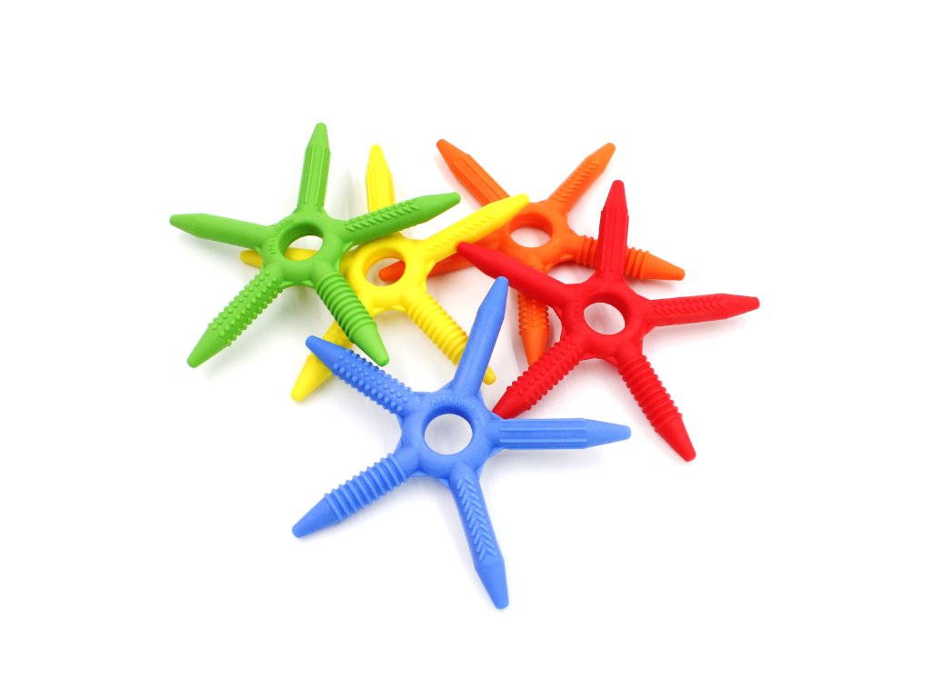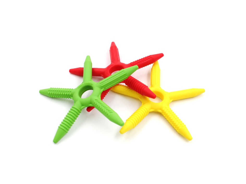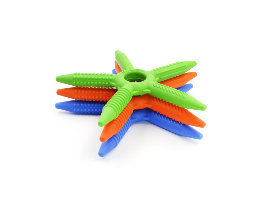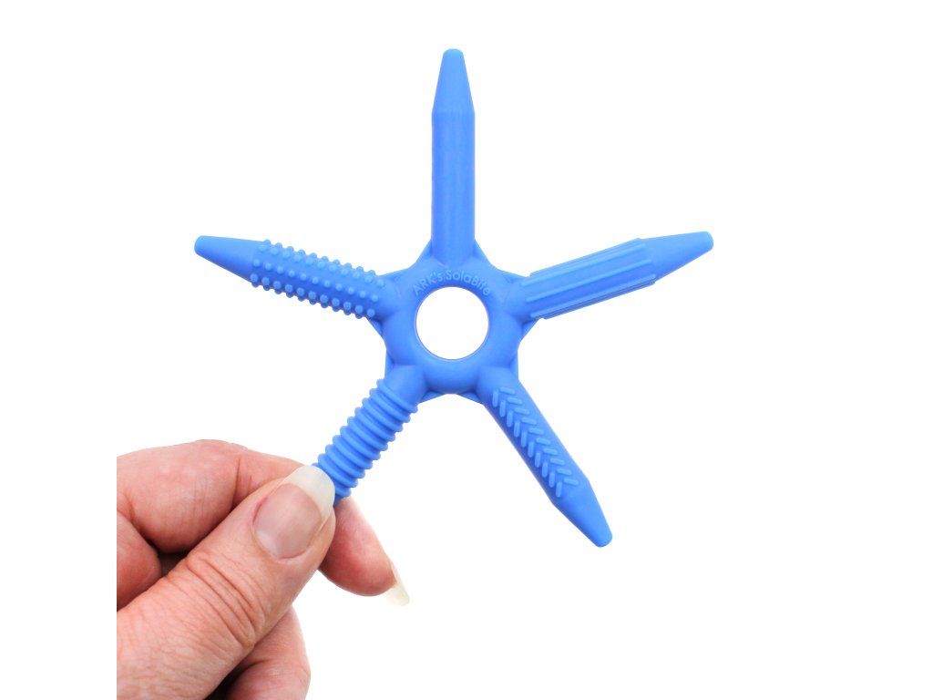 SolaBite™ od ARK je kousátko s velkým charakterem! Ať už si pod ním představíte slunce, hvězdici, ninja hvězdu – je ideální pro senzorické hledače, kteří si zamilují všechny variace a textury. Má pět různých ramen ke žvýkání, každé s jinou texturou. Jeho použití je ale mnohem širší, dá se využít také jako tichá hračka, s kterou můžete dle libosti kroutit, vrtět a točit.