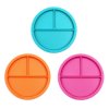 Ideální pomocník pro vybíravé děti a nejedlíky, děti nebo dospělé, kteří nemají rádi, když jídlo míchá. Každý talíř má tři políčka/sektory, aby jídlo zůstalo hezky oddělené. Naše talíře jsou robustní, tvrdé, poměrně těžké a vyrobené z nezávadného potravinářského plastu. Lehce je oddělíte od sebe, pokud jich ukládáte více na sebe. Navíc talíře barevně ladí s našimi lžičkami proSpoon.